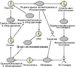 Все прецеденты и заинтересованные лица системы описываются в объектной модели с требуемой степенью точности. Отметим сложность моделирования деятельности УПП. В сущности, модель УПП носит тот же уровень сложности, что и модель всего предприятия.