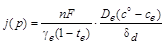 - абсолютная температура, je°, ae - кинетические параметры, определяемые по экспериментальным данным (ток обмена и кажущиеся коэффициенты переноса), n - число электронов, участвующих в реакции, te - число переноса, De - коэффициент диффузии ионов, ge - коэффициент активности; dd - толщина диффузионного слоя на границе электрод-электролит; c°, ce - концентрация ионов в глубине электролита и на границе электрода,