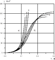изменялось с шагом 0,01 В. При этом процесс a)-g) сходился за 3-4 итерации при e=10-16. Перенапряжение в пункте b) определялось за 2-3 итерации с точностью e=10-16. В качестве начального значения для плотности тока использовалось значение, полученное на предыдущем шаге.