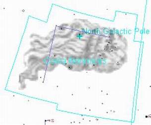 Это созвездие имеет смысл внимательно рассмотреть сначала невооруженным глазом, а потом в бинокль. В правой его половине большая группа слабых звездочек образует нечто, напоминающее "косяк" летящих журавлей. Пожалуй, можно, подобно Конону, усмотреть здесь и копну светящихся роскошных волос красавицы Вероники. Но нам хочется отметить, что внутри этого "косяка" и по его окраинам мощные телескопы обнаруживают огромное количество галактик. Здесь, в созвездии Волос Вероники, наблюдается еще одно "облако галактик". Оно несколько уступает в численности облаку в Деве: там около 2500 звездных систем, здесь около тысячи. Но возможно, что много галактик в облаке из созвездия Волос Вероники мы просто не видим из-за ничтожности их видимого блеска,- ведь описываемое облако удалено от Земли на 25 миллионов парсеков. Как и положено по закону "красного смещения", оно убегает от нас с умопомрачительной скоростью 7400 км/c.