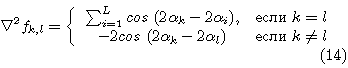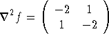 . Вторая конфигурация, к которой сходился алгоритм, получается из первой путем изменения направления какого-либо одного из порождающих векторов. Аналитические вычисления показывают, что градиент в данной точке равен нулю, а матрица Гессе равна: