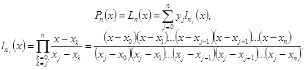Многочлен Лагранжа, принимающий заданные значения в узловых точках имеет вид: