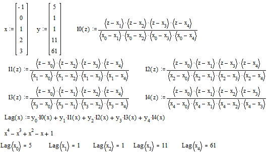Задание . Восстановить многочлен Лагранжа, удовлетворяющий приведенным исходным данным.
