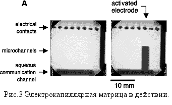 Одно из интересных решений этой проблемы базируется на явлении электрокапиллярности. Вкратце, электрокапиллярный эффект заключается в том, что внешнее электрическое поле изменяет поверхностное натяжение проводящей жидкости. Явление вполне понятное: ведь поверхностное натяжение и капиллярность обязаны своему существованию межмолекулярному (ван-дер-ваальсовому) взаимодействию, которое имеет электрическую природу. Это явление можно считать "жидким" аналогом пьезоэлектричества (явления, заключающегося в том, что механическая деформация некоторых кристаллов приводит к возникновению разности потенциалов и наоборот).