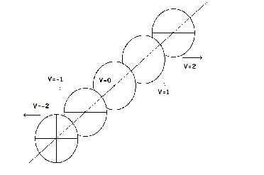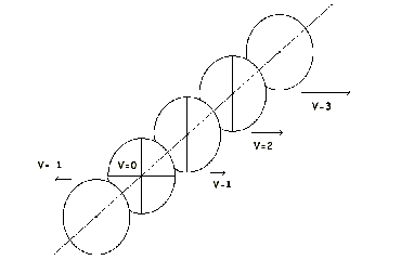 Вот это множество вращающихся систем, расположенных на прямой так, что все они крутятся синхронно - то есть их радиусы ложатся на одну прямую одновременно ("сборка" прямой из единичных отрезков - это и есть "одновременность"). Абсолютно все они вращаются, но мы не можем определить частоту их вращения, поскольку НЕТ МЕРЫ ВРЕМЕНИ, относительно которой можно было бы задать частоту. Иными словами, с традиционной точки зрения вращающееся "колесо", выбранное за систему отсчета, может иметь любую скорость вращения, зато относительно выбранной вращение другой может быть строго определено. Понятно, что допустимой окажется и обратная операция: определение вращения системы отсчета относительно той, чье вращение измерялось первоначально.