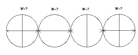 Теперь представим бесконечное множество одинаковых вращающихся систем ("колес"), которые характеризуются одинаковыми мерами [м], оси которых располагаются на прямой, перпендикулярно к ней. Наше рассмотрение чисто классическое, ведь мы хотим вывести классическую характеристику вращения (которая только в неклассическом случае псевдоевклидовой плоскости проявит себя как предельная константа S), поэтому нет ничего удивительного, что мера расстояния будет общей для всех систем (радиус "колеса"). Эта мера в нашем случае будет играть ту же роль, что и время для множества инерциальных систем. "Одновременность" здесь будет выступать, как "синхронизация" - положение, когда радиусы "колес" лежат на общей прямой, через точки которой проходят оси.