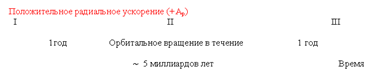 При построении математической модели последнего процесса вновь выявилась необходимость введения силы, приводящей к изменению характера движения периферийного тела. Оказалось, что сила притяжения увеличивавшаяся "буквально с каждым метром" на начальном этапе сближения и создававшая радиальное ускорение, с некоторого расстояния "стабилизировалась", что приводило к “исчезновению” предшествующего радиального ускоренного смещения планеты на участке перехода ее к вращательному движению на орбите.