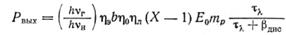 число порогов, т. е. коэффициент превышения энергии накачки Ен над пороговой энергией накачки Ео; ηэ — квантовая эффективность; mp — коэффициент, учитывающий радиационные шумы; b — коэффициент преобразования электрической энергии в лучистую (к. п. д. лампы накачки—светоотдача импульсных ламп); ηo— параметр, характеризующий долю света, падающего с отражателя на поверхность кристалла (к. п. д. оптической отражательной системы лазера); ηl — коэффициент использования излучения лампы накачки, поглощенной кристаллом.