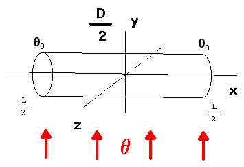 Тонкий цилиндрический стержень помещён в тепловой поток с постоянной температурой , на концах стержня поддерживается постоянная температура 0 .