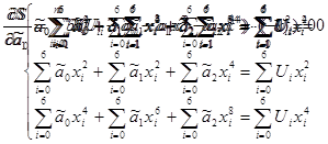 Нормальная система уравнений для определения новых оценок коэффициентов функции (2.5)с помощью МНК имеет вид: