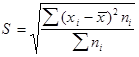 Среднее квадратическое отклонение представляет собой корень квадратный из дисперсии и обозначается S: