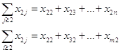 В системе (2.3) выделен указанный выше базис: базисные неизвестные из первых т уравнений образуют первый столбец матрицы перевозок, а базисные неизвестные остальных уравнений образуют первую строку матрицы перевозок без первого неизвестного