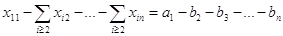 означает сумму всех свободных неизвестных. Аналогично, исключив из первого вертикального уравнения базисные неизвестные