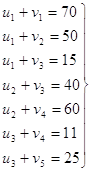 1)ui+vj-сij=0 для клеток, занятых перевозками;