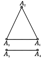 В случае, изображенном на рисунке1, все условия теоремы Эйлера выполнены, m=12, n=18, l=8 и m–n+l=2. На рисунках2 и 3 изображены случаи, когда условия этой теоремы не выполняются. Так, на рисунке2 из точки A1 нельзя попасть в точку A5 и m–n+l=3≠2, а на рисунке3 линия, соединяющая точки A1 и A2 , является самопересекающейся и опять m–n+l=3≠2.