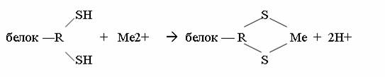 Образование комплекса токсиканта с SН-группами биомолекул сопровождается их повреждением, нарушением функции, что и инициирует развитие токсического процесса [12].