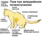 На следующий день выведено 190 мл мочи, мутноватой, темно-желтого цвета. Начался понос, дефекация частая, кал дегтеобразного вида, очень мажется и оставляет несмываемое пятно. После дефекации кот переходит на другое место и долго сидит, пытаясь помочиться.