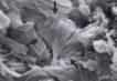 Рис. 3. Сканированная электронная микрофотография поверхности кальция оксалата, удаленного из мочевого пузыря 10-летнего кастрированного самца кота. Обратите внимание на сульфадиазиновый кристалл веерообразной формы (увеличение Х 2,880). |