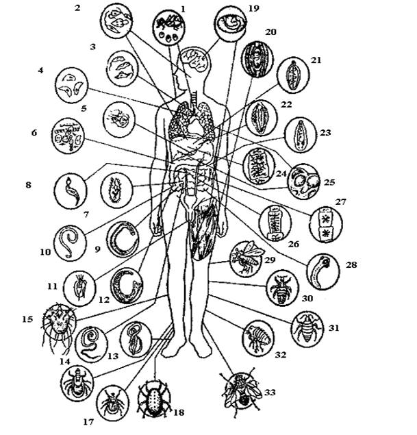 Шляхи проникання паразита в тіло людини можутъ бути різними Напри-клад через рот — перорально: цисти дизентерійної амеби, яйця аскариди, гострики, фіни ціп'яків, личинкові стадії сисунів. У деяких паразитів (анкілостома, шистосома) личинка вбуравлюється в шкіру (перкутантне проникнення) . Можливе зараження статевим шляхом, (трихомонади)