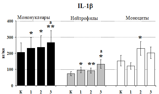 исследовали влияние b-эндорфина на продукцию IL-1b и IL-8 во фракциях мононуклеаров и нейтрофилов.
