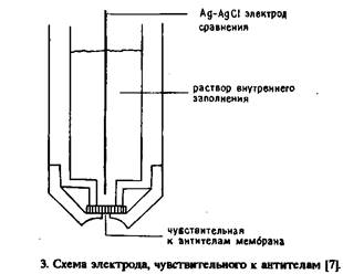 Аизава и сотр. с помощью пары обычных хлорсеребряных электродов с аналогичными мембранами, одна из которых содержала антиген, определяли наличие антител Вассермана. Асимметричный мембранный потенциал, который возникал в ходе реакции,, зависел от концентрации антител.