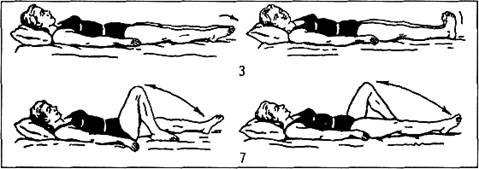 Поочередное подтягивание ног по постели, сгибая их в коленном и тазобедренном суставах (стопы скользят по постели). По 4-5раз каждой ногой.