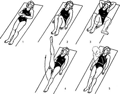 И. п. - лежа на спине, ноги выпрямлены, руки вдоль туловища.