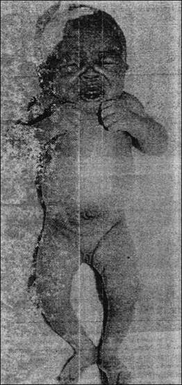 Приложение 1. «Сардоническая улыбка» (risus sardonicus) у больных столбняком: в) Столбняк у новорожденного (tetanus neonatorum).