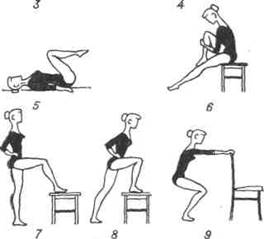 Коленный сустав. С помощью аппарата воздействуют на сгибатели и разгибатели этого сустава. ИП больного—сидя. Необходимо, чтобы стул и подставка для бедра находились на одном уровне. Бедро и голень фиксируют ремнями на передвигающемся кронштейне с подставкой. При вытянутой ноге больной делает активное сгибание, при согнутой — активное разгибание. Длительность процедуры — от 5 до 25 мин, масса груза сразу большая — 4 кг, в дальнейшем ее можно доводить до 5 кг, но не более.