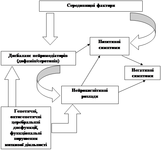 С.Н. Мосолов, 2006; В.Я. Пишель, 2007; О.А. Гильбурд, 2007). В зв¢язку з цим найбільше значення набувають дослідження, присвячені загальним біологічно важливим зрушенням в організмі хворого (Т.Б. Дмитриева, 1998; Р.Д. Єнсилл, 2001;О.С. Чабан, 2003; L.H. Tecott, 2005; C. Tenn, 2005; А.С. Тиганов, 2007). Слід зазначити, що базові нейронауки не вирішили усіх проблем шизофренії, але суттєво розширили методологічні і методичні основи її інтерпретації.