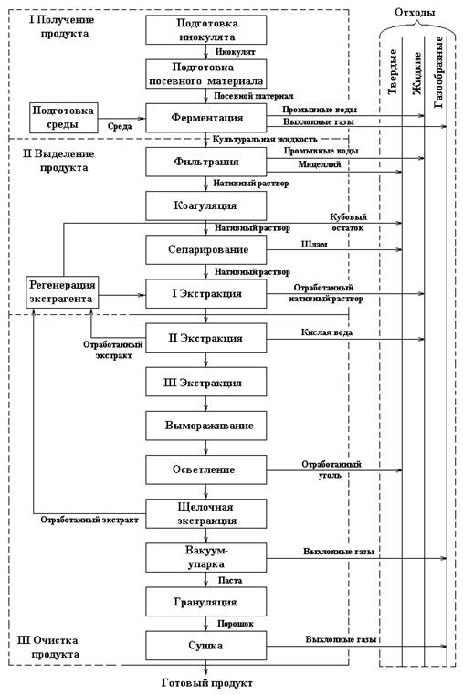 Процесс получения антибиотика включает в себя следующие основные стадии (рис. 1):