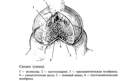 Как передается возбуждение от одного нейрона другому или от нейрона, например, на мышечное волокно? Этой проблемой интересуются не только профессиональные нейробиологи, но и врачи, особенно фармакологи. Знание биологических механизмов необходимо для лечения некоторых заболеваний, а также для создания новых лекарств и препаратов. Дело в том, что одними из основных мест воздействия этих веществ на организм человека являются места передачи возбуждения с одного нейрона на другой (или на другую клетку, например клетку сердечной мышцы, стенки сосудов и пр.). Отросток нейрона аксон направляется к другому нейрону и образует на нем контакт, который называют синапсом (в переводе с греческого - контакт; см. рис. 1). Именно синапс хранит многие тайны мозга. Нарушение этого контакта, например, веществами, блокирующими его работу, приводит к тяжелейшим последствиям для человека. Это место приложения действия наркотиков. Примеры будут приведены ниже, а сейчас рассмотрим, как устроен и как работает синапс.