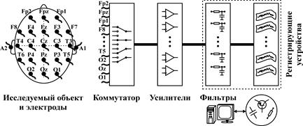 Рис. 14. Типичная блок-схема электроэнцефалографа.