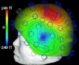 Нужно отметить, что этап наложения электродов остается наиболее трудоемким при проведении ЭЭГ – исследований, он практически не поддается автоматизации и требует участия опытного квалифицированного специалиста. Перспективным направлением решения этих проблемм является метод магнитоэнцефалографии (МЭГ). В нем используются магнитные, а не электрические поля (как при ЭЭГ). МЭГ определяет направление аномальной электрической активности мозга, а не только усиливает сигналы. Многие ученые считают, что МЭГ дополняет ЭЭГ, но его применение в основном пока ограничивается исследовательскими целями [7] (рис.15).