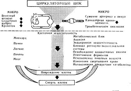 Особенно чувствительна к недостатку кислорода РЭС. Токсические вещества, например, эндотоксины кишечника, перестают улавливаться РЭС (главным образом печени) и с кровотоком попадают в сердце и легкие. Этот механизм считается одним из главных, способствующих переходу шока в необратимую фазу частично в связи с развитием необратимого коллапса периферических сосудов.