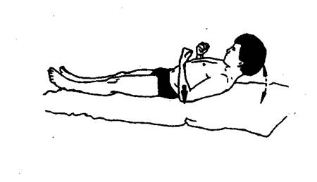 Большая часть этих упражнений выполняется в изометрическом режиме в положении лежа. Дети психологически плохо переносят изометрические нагрузки. Поэтому авторы предпочитают упражнения, основанные на сочетании статической и динамической нагрузки. Ниже приведено в качестве примеры несколько симметричных упражнении такого типа:
