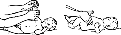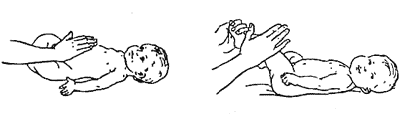 в) Вібрація. Напівзігнутими пальцями руки поплескують по стопі дитини. 4-6 разів.
