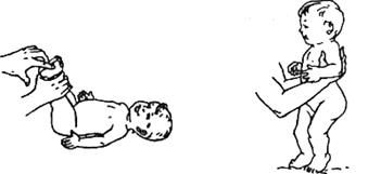 Рис. 3.8. Рефлекторна вправа — Рис. 3.9. Рефлекторна вправа — згинання й розгинання пальців стопи потанцовування (підошовний рефлекс) (ножний рефлекс)