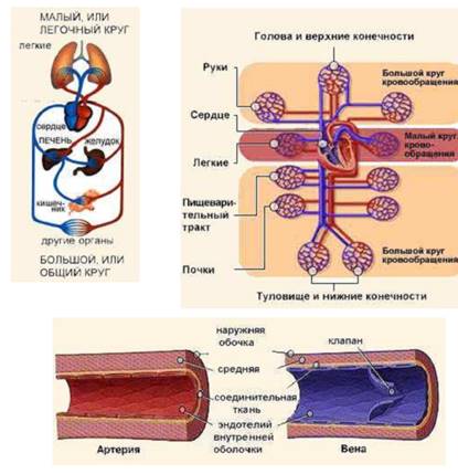 Их структура сходна со строением артерий, они также состоят из трех тканевых оболочек, но средняя оболочка более тонкая, поэтому вены более мягкие и хрупкие и менее эластичные. Большие вены имеют внутри маленькие клапаны, регулирующие направление тока крови и препятствующие ее обратному ходу. Единственные вены, несущие артериальную кровь к сердцу, - это легочные ; они берут начало в легких и, следовательно, транспортируют кровь, обогащенную кислородом. Остальные вены идут параллельно артериям и несут венозную кровь.
