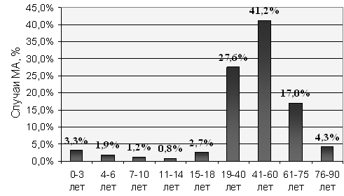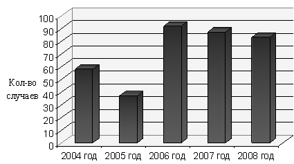 Исходя из этого, целью нашей работы было изучение, анализ и обобщение информации о случаях ЛА, зарегистрированных в лечебно-профилактических учреждениях Луганска и Луганской области за 2004-2008 гг.