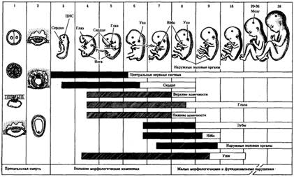 У каждого органа есть свой критический период, во время которого его развитие может быть нарушено. Чувствительность различных органов к повреждающим воздействиям зависит от стадии эмбриогенеза к повреждающим факторам.