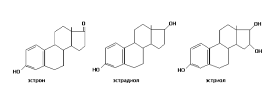 Эстрогены образуются путем ароматизации андрогенов, синтезируемых главным образом надпочечниками. Ароматизация тестостерона приводит к образованию эстрадиола (яичники, надпочечники), а результатом ароматизации андростендиона является эстрон (жировая ткань, надпочечники). Прогестерон секретируется желтым телом.