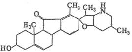 Стероидные алкалоиды представляют собой стероидные соединения, в которых сочетаются свойства как алкалоидов, так и стероидных сапонинов. Подобно сапонинам, гидролизуются на сахар и агликон, обладают поверхносной и гемолитической активностью. Стероидные алкалоиды - это гликозиды, в которых агликонами являются азотсодержащие стероидные соединения с 27 углеродными атомами, представляющие собой производные циклопентанпергидрофенантрена. По строению они аналоги стероидных сапонинов и отличаются от них содержанием в агликоне (сапогенине) атома азота в пятом или шестом (Е, F) кольце. Благодаря наличию атома азота в агликоне обладают основными свойствами. Стероидные алкалоиды широко распространены в растениях семейства пасленовых, у различных видов паслена, особенно дольчатого, содержащего стероидные гликоалкалоиды. Близкие стероидные гликоалкалоиды найдены в ботве картофеля, помидоров, баклажанов, красного перца, в паслене черном и паслене сладко-горьком. Эти травы при переработке могут дать агликон соласодин и другие стероиды, пригодные для синтеза кортизона. Стероидные алкалоиды характерны также для рода чемерицы. Стероидные алкалоиды, подобно стероидным сапонинам, обладают поверхностно-активными и гемолитическими свойствами и образуют молекулярные соединения с холестерином и близкими стеринами.