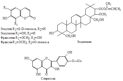 3. Хроматография в тонком слое. Водное или спиртовое извлечение хроматографируют на силикагеле или алюминия оксиде в подходящей системе растворителей. Для нейтральных сапонинов чаще всего используют н-бутанол – уксусная кислота – вода, для кислых – н-бутанол – водный аммиак в различных соотношениях. Систему подбирают экспериментально. На хроматограммах сапонины обнароуживают, проявляя различными кислотными реагентами: конц. Кислота серная, уксусный ангидрид, 25% раствор фосфорномолибденовой кислоты, треххлористая сурьма и др., часто в сочетании с кобальта хлоридом, ванилином, пара-диметиламинобензальдегидом и др.