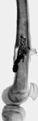 Диагноз . Распознавание хронического остеомиелита не представляет затруднений, если в анамнезе имеются указания на перенесенный острый остеомиелит, наличие гнойного свища и рецидивов. Диагноз хронического остеомиелита основывается на рентгенологических методах исследования — рентгенографии и томографии, фистулографии, позволяющей определить расположение свищевых ходов и их связь с очагом в кости.