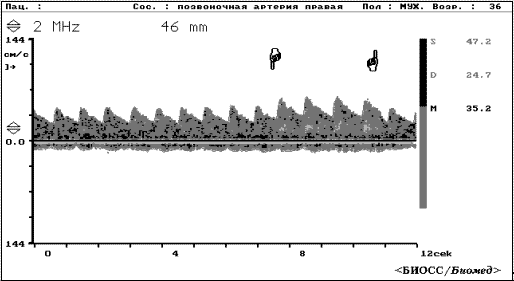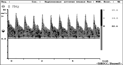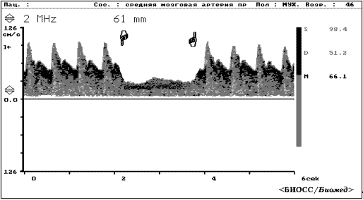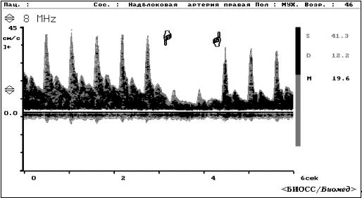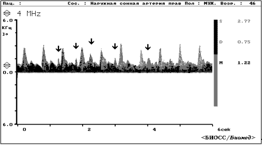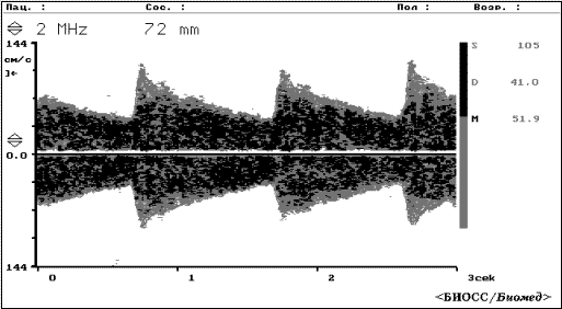 Успешное предупреждение и эффективное лечение нарушений мозгового кровообращения, обусловленных патологической извитостью сонных артерий, атеросклеротических поражений артерий, всевозможных окклюзий и стенозов во многом зависит от диагностики параметров кровотока. Существующие в настоящее время методы исследования брахиоцефальных артерий и мозгового кровотока, такие как дигитальная субтракционная ангиография, компьютерно-томографическая ангиография, магнитно-резонансная ангиография, инвазивны и (или) небезопасны для пациента, дорогостоящи, дают в основном информацию о морфологических изменениях и не позволяют детально оценить количественные характеристики кровотока