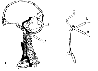 Скорость мозгового кровотока находится в прямой зависимости от величины перфузионного давления и обратно пропорциональна сопротивлению мозговых сосудов. При снижении регионарного мозгового кровотока до некоторого критического уровня возникает ишемия головного мозга с исходом в некроз. Этот критический уровень неодинаков для различных участков головного мозга. В клинических исследованиях показано, что у человека критическая скорость мозгового кровотока, при которой появляется неврологическая симптоматика, составляет для серого вещества 15-29 мл/мин, т.е. примерно 30-40% от нормы. M. Reivich (1971 г.) приводит более высокие значения критического уровня мозгового кровотока. По его наблюдениям, симптомы и признаки ишемии головного мозга появляются при снижении среднего системного АД до 30 мм рт.ст., когда скорость мозгового кровотока составляет около 30 мл/мин на 100 г вещества или около 60% от нормы. S. Strandgaard (1976 г.) наблюдал начальные признаки ишемии головного мозга у больных с нормальным АД при снижении среднего системного АД до 43 8 мм рт.ст.