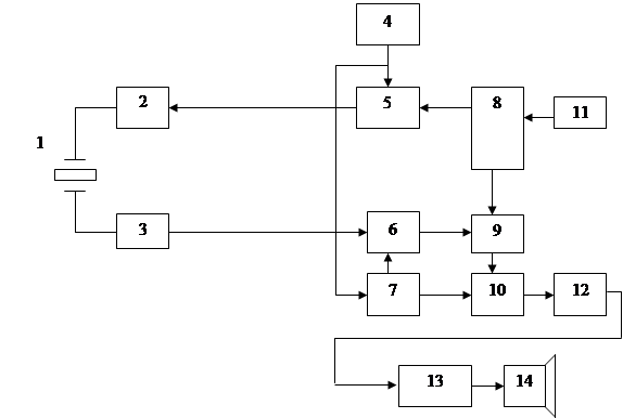 Измеритель скорости кровотока Схема принципиальная электрическая |