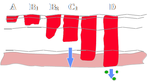 | Т4 | Опухоль любого размера, прорастающая соседние органы: влагалище, мочеиспускательный канал, мочевой пузырь (вовлечение одного мышечного сфинктера не классифицируется как Т4) | ![]() |