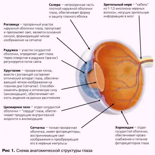 Первый шаг в понимании глаукомы - это ознакомление со строением глаза и его функциями (рис. 1).